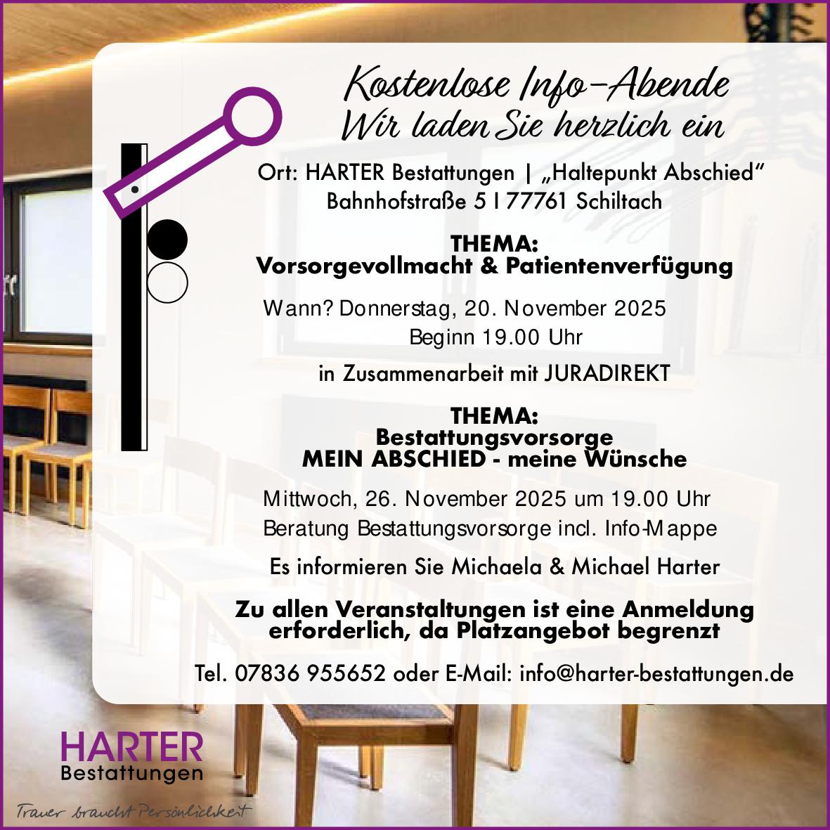 Schiltach, Schenkenzell, Wolfach, Kirnbach, St. Roman, Oberwolfach, Schapbach, Bad Rippoldsau, Hausach, Haslach, Gutach, Hornberg, Schramberg, Sulgen, Hardt, Lauterbach, Alpirsbach, Reinerzau, Tennenbronn, Aichhalden...