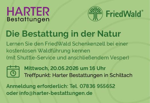 Nächste kostenlose Waldführungen im FriedWald Schenkenzell:
